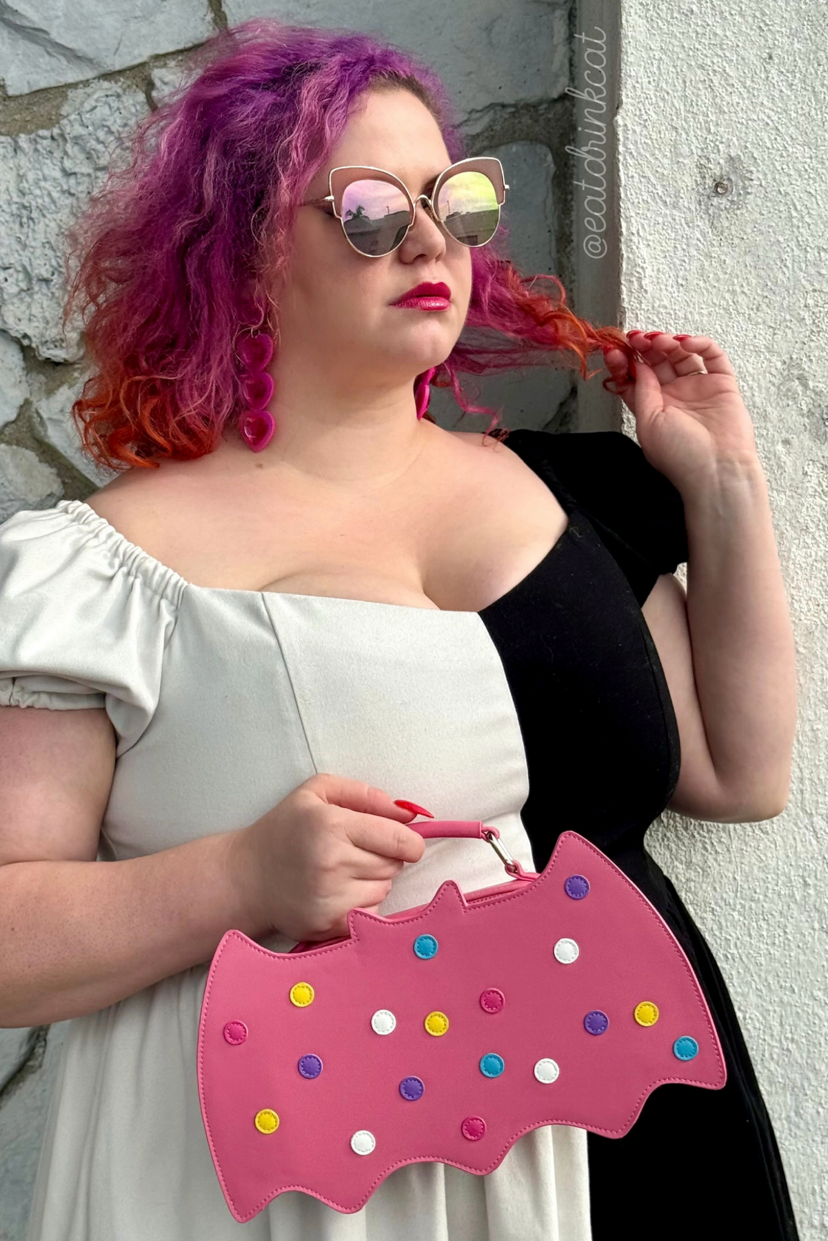 Circus Cookie Bat Crossbody Bag - Pink Vegan Leather Sprinkle Purse by Weasel Wear