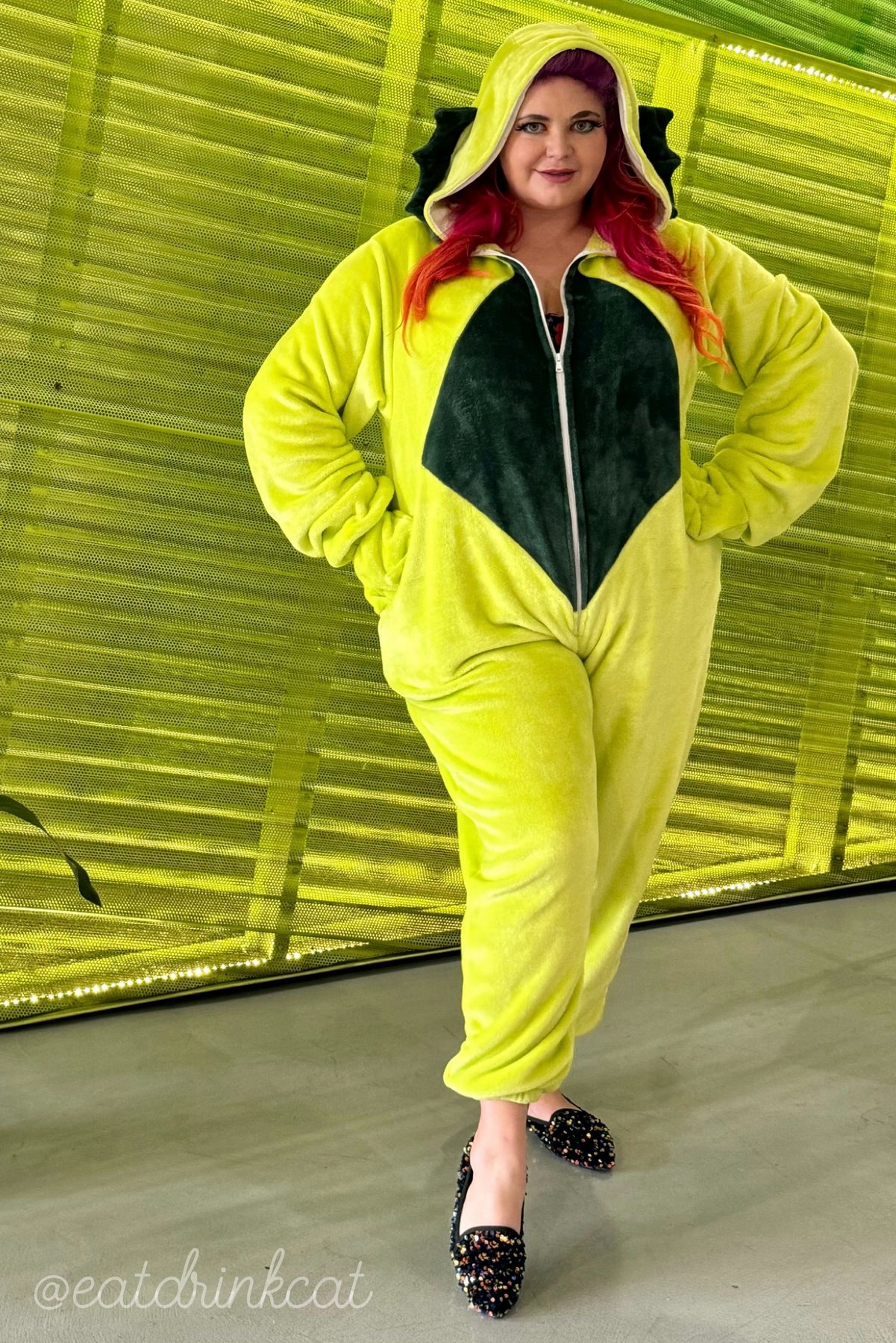 The true showpiece is the hood, complete with the Creature’s signature gills in contrasting dark green, intricately stitched for a bold, dimensional effect. Matching light green gloves shaped like aquatic claws complete the transformation, turning this cozy number into a full monster moment.