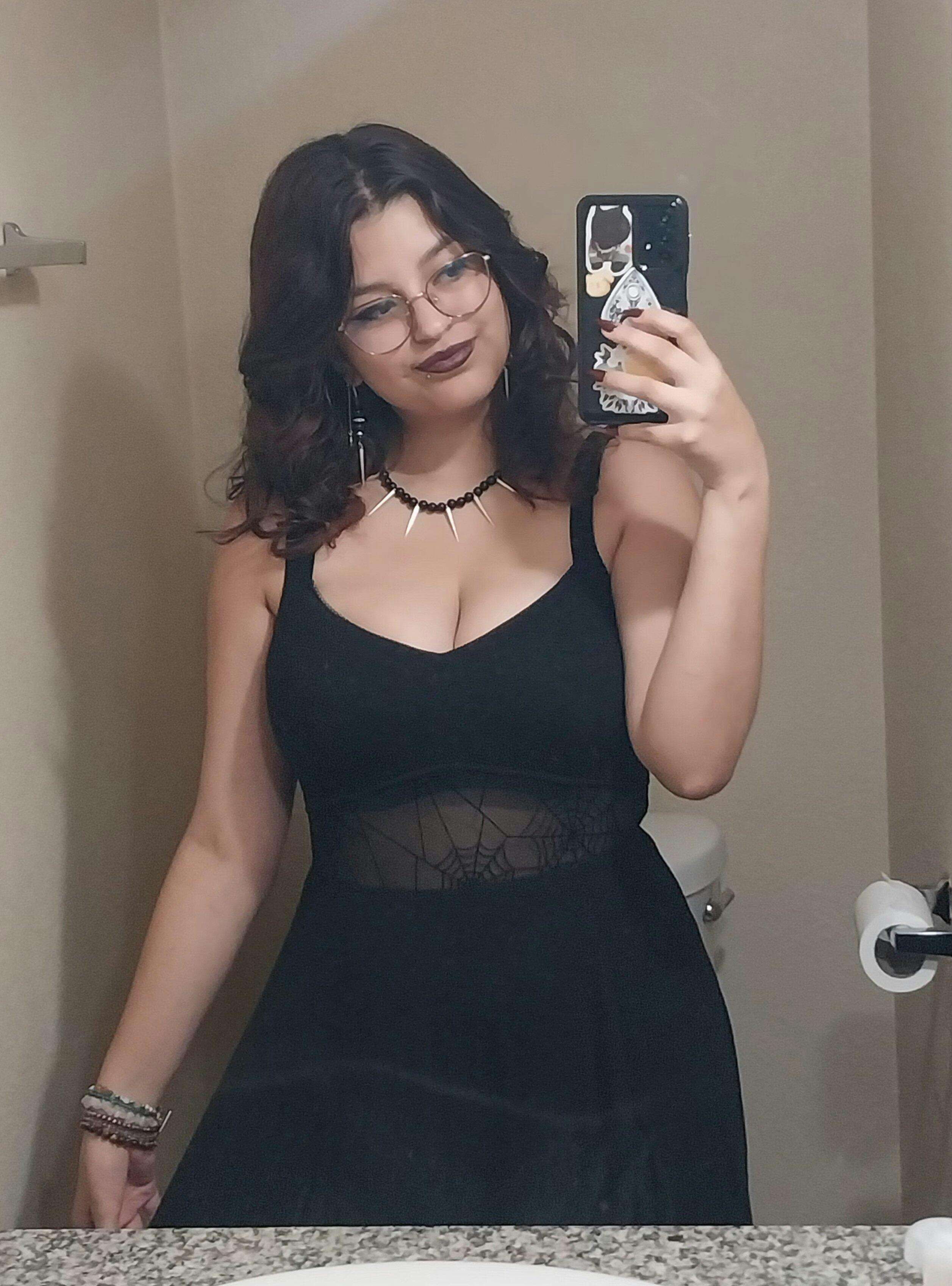 KitKat BadKitty I missed this dress the 1st 2 drops and was determined to get it, no matter what!!! This is definitely a Spooky Dream with a sexy sheer underbust and sheer panels in the skirt, all beautifully adorned with webs and an amazing amount of stretch, even for plus size bodies!!! Whether daytime shenanigans, a night out with your ghouls, or a scary sexy time with your partner, this dress will elevate it all!!!